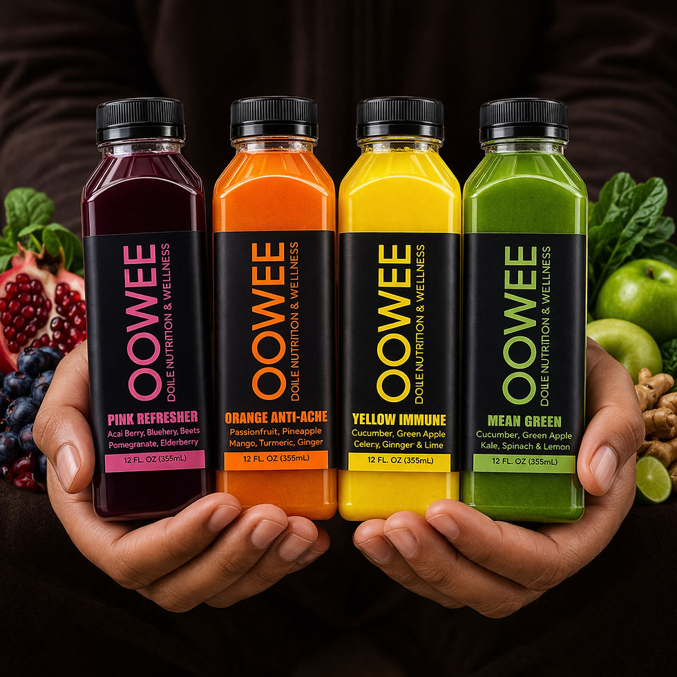 At Oowee Mobile Nutrition & Wellness, we are passionate about providing our customers with the tools they need to live a healthy, holistic & vibrant life. Our fresh pressed juices are made from only the highest quality fruits, vegetables & herbs, ensuring that you can enjoy all the benefits of a proper diet in every delicious sip. Whether you’re looking to boost your immune system, detox your body, or jumpstart a new fitness routine, our juices are an essential part of any nutrition plan.